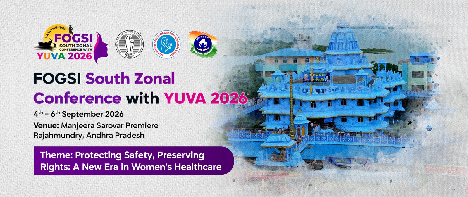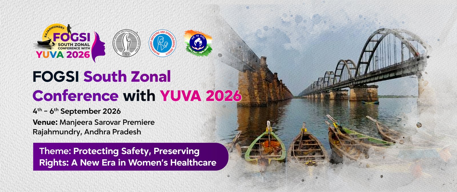 The Rajahmundry Obstetrics and Gynaecology Society (ROGSY) is deeply honoured to host the FOGSI South Zonal Conference with YUVA 2026 and extends a warm and heartfelt welcome to you all in Rajahmundry, Andhra Pradesh, from 4th to 6th September 2026.